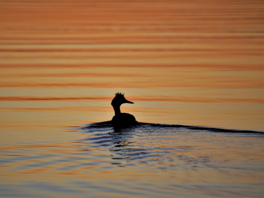 Title: Haubentaucher im letzten Abendlicht